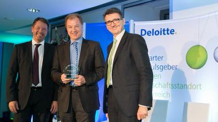Der Award wurde am Abend des 4. März 2015 in Anwesenheit von mehr als 100 Gästen in den Räumlichkeiten von Deloitte vergeben. Auf unserem Foto ist Andreas Dangl mit dem Award zu sehen, flankiert von den Vertretern von Deloitte.