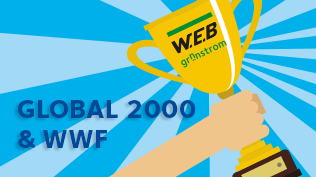 Beim Stromanbieter-Check kristallisierten sich fünf Gruppen von Anbietern heraus. Die WEB Windenergie AG wurde dabei in die höchste Kategorie eingestuft und ist somit für WWF und GLOBAL 2000 „Treiber der Stromzukunft“. Die W.E.B überzeugt damit einmal mehr mit dem W.E.B-Grünstrom als echte umweltfreundliche Alternative für Stromkunden.