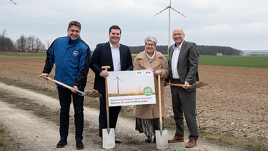 Image (f.l.t.r.): W.E.B CEO Frank Dumeier, Mayor Christian Kurz of Pöttelsdorf, Mayor Ulrike Kitzinger of Sigleß, EVN Naturkraft Managing Director Helwig Überacker