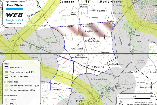 - Novembre 2021 – Mars 2022 : Premiers échanges avec les communes de Le Sourd, La Vallée-au-Blé et Marly-Gomont. Les trois conseils municipaux délibèrent favorablement. Premiers contacts avec les propriétaires fonciers.