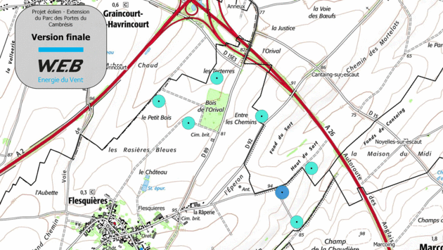 - 2018 : Lancement du cadrage et des premières études de faisabilité du projet d’extension du parc éolien à Flesquières, avec les premiers échanges fonciers et une orientation vers une extension au sud du parc existant.